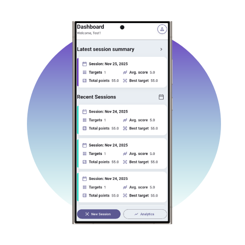 AimSight keeps every session, target and score organized, so you can quickly see how your practice is evolving over time.