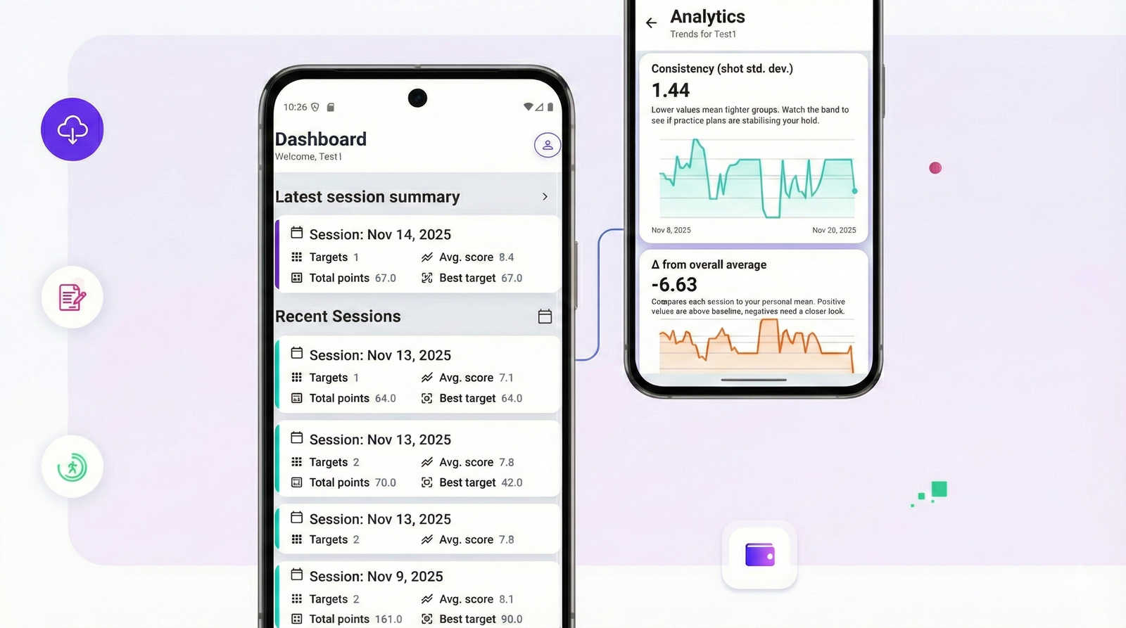 Log each session, score targets with your phone, and watch