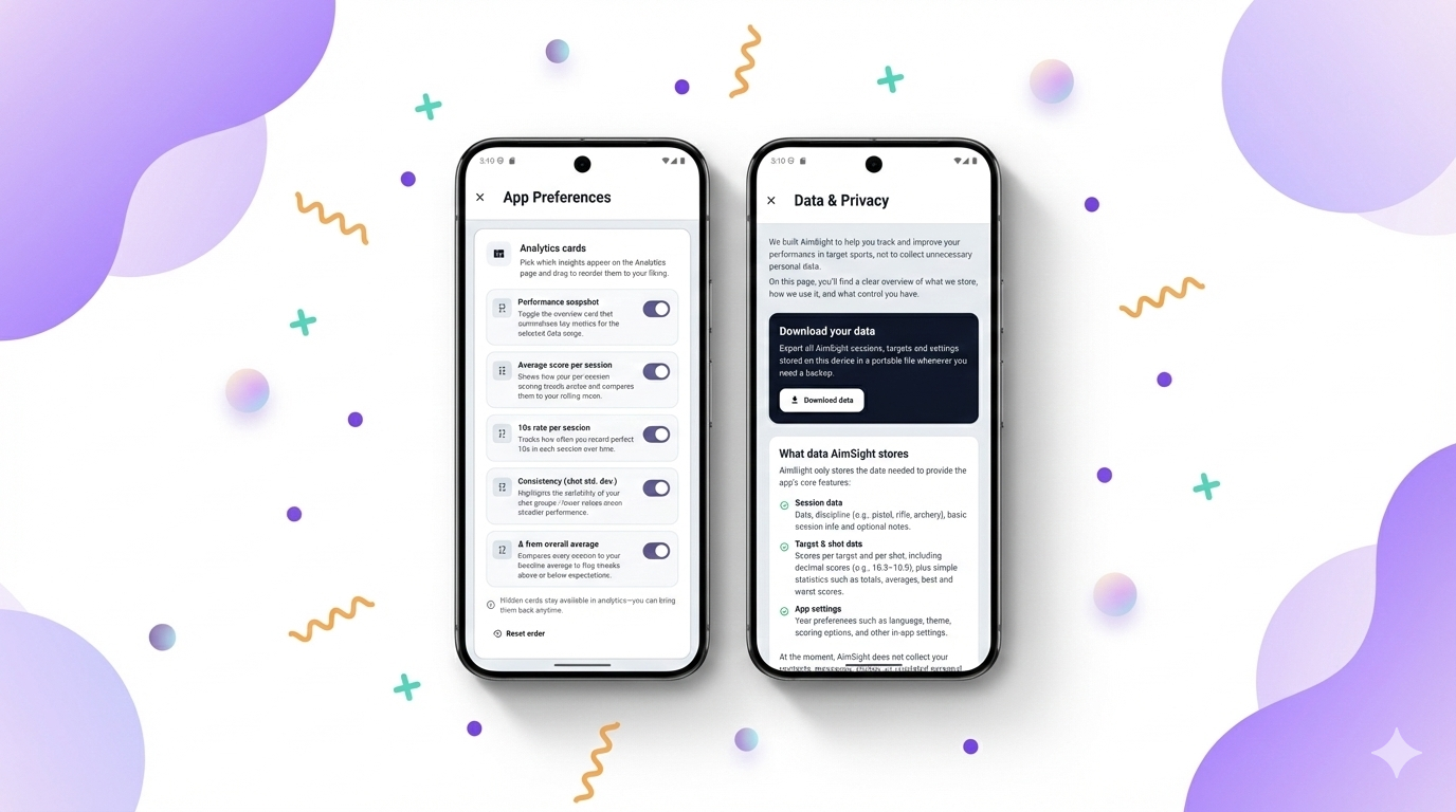 AimSight replaces scattered notes and target photos with one clean record of your training, so you can finally see if your practice is paying off.